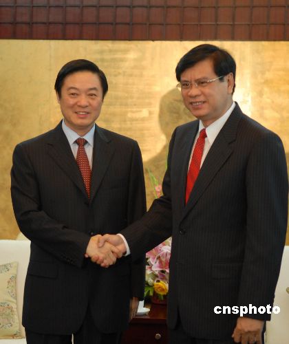 十月二十九日,出席中國—東盟博覽會的老撾總理波松在南寧會見了中共廣西壯族自治區委員會書記劉奇葆。兩人就雙邊的教育合作及產業合作達成了許多共識。中新社發 蔣雪林 攝