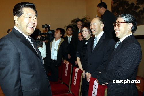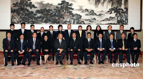 圖:賈慶林會見霍英東先生親屬并合影留念