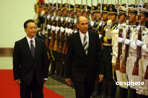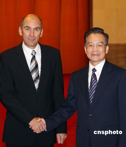 溫家寶歡迎斯洛文尼亞總理揚沙