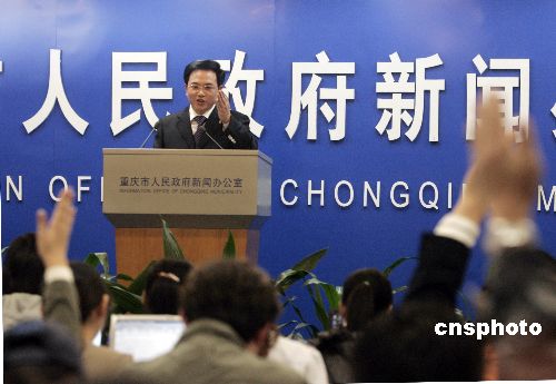 11月15日,重慶市人民政府舉行首場自主新聞發布會,就三峽移民、交通改造和建設、醫療保險、物價上漲、城鄉統籌試驗區等當地市民和國內外媒體關注的問題進行回答。重慶市是繼上海市后第二個舉行自主新聞發布會的中國城市。據悉,重慶自主新聞發布會目前暫定每月一次,定為每個月的第二個星期四下午舉行。中新社發 郭晉嘉 攝