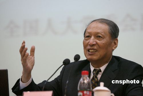 十一月二十八日,全國人大常委會副委員長成思危為在北京為“第三期海外華文媒體高級研修班”學員做題為“中國當前經濟形勢”的報告。中新社發 張勤 攝