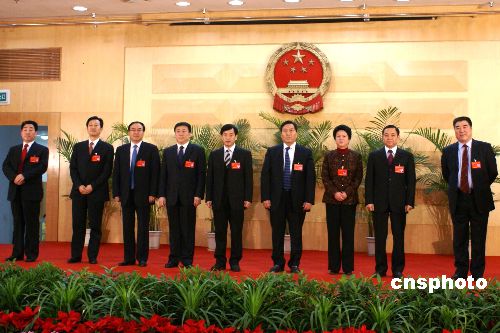 一月二十三日下午,當選河南省新一屆政府省長、副省長與媒體見面。從右至左為李成玉、李克、孔玉芳、史濟春、秦玉海、張大衛、徐濟超、宋璇濤、劉滿倉。中新社發 史寶銀 攝
