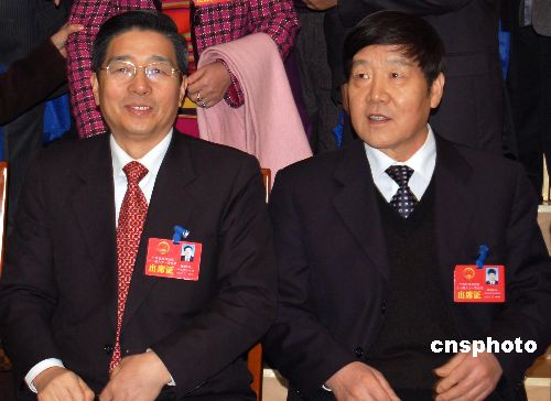 一月二十七日,廣西壯族自治區十一屆人大一次會議閉幕,此前廣西自治區政協十屆一次會議已閉幕。與會代表紛紛邀請中共廣西自治區委書記、新任廣西人大主任郭聲琨(左)、新任廣西政協主席馬鐵山(右)合影。中新社發 劉萬強 攝