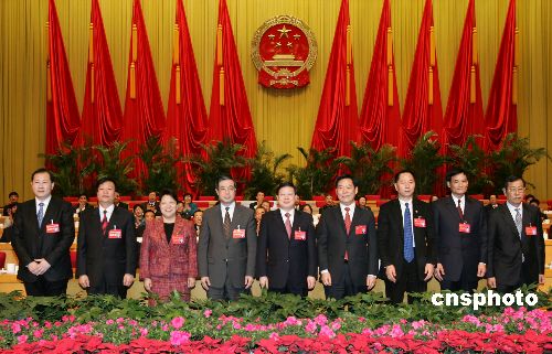 1月28日,天津市第十五屆人民代表大會第一次會議閉幕,新當選的天津市市長黃興國率全體副市長集體亮相。從左至右分別為:任學鋒、李文喜、張俊芳、崔津渡、黃興國、楊棟梁、只升華、熊建平、王治平。中新社發 田齊 攝