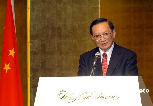 2月21日,正在日本進行訪問的中國國務委員唐家璇出席了由中國駐日大使崔天凱舉辦的招待會,日本各界及旅日華人華僑代表約600人參加招待會。圖為唐家璇國務委員正在用日語進行演講。中新社發 滕劍峰 攝