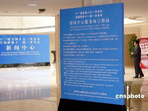 二00八年“兩會”新聞中心即將正式啟用,準備迎接前來采訪的境內外媒體記者。中新社發 翁陽 攝