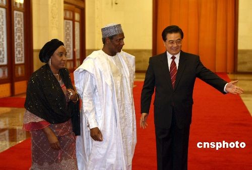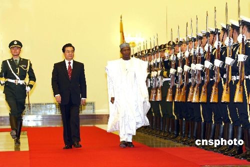 圖:胡錦濤舉行儀式歡迎尼日利亞聯邦共和國總統亞拉杜瓦