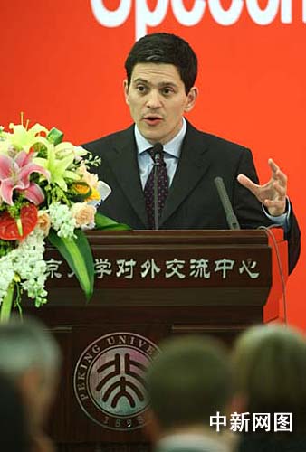 圖:英國外交大臣米利班德在北大演講