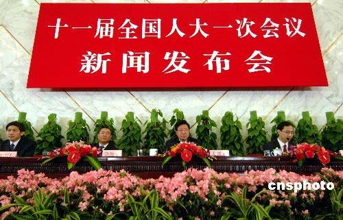 十一屆全國人大一次會議在北京人民大會堂新聞發布廳舉行首場新聞發布會。中新社發 王東明 攝
