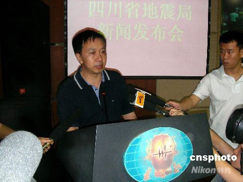 5月12日下午14時27分,四川汶川縣發(fā)生7.8級地震。四川省地震局先后已舉行6次新聞發(fā)布會,向外界及時發(fā)布最新災(zāi)情和抗震救災(zāi)情況。四川省地震局副局長、新聞發(fā)言人鄧昌文說,截至12日22時20分,四川地震已造成8533人死亡,其中綿陽市北川縣死亡人數(shù)達(dá)到7000多人。目前集震區(qū)通訊、交通依然中斷,人員傷亡不明。據(jù)統(tǒng)計,目前已發(fā)生余震527次,其中余震為6級的地震有兩次。中新社發(fā) 楊杰 攝