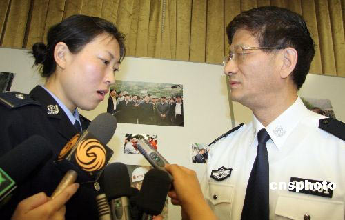 5月19日,中國國務委員、公安部部長孟建柱在北京向被稱為地震災區(qū)“最堅強女性”的四川省彭州市公安局民警蔣敏表示慰問。在此次汶川特大地震災害中,蔣敏在北川縣城老家的爺爺奶奶、母親、剛滿兩歲的女兒等近十位親人不幸罹難,但她依然連續(xù)奮戰(zhàn)在抗震救災一線。蔣敏事跡經(jīng)官方媒體報道后,被民間稱為“最堅強女性”、“最堅強母親”,網(wǎng)友則親切稱她為“最堅強警花”。中新社發(fā) 孫自法 攝
