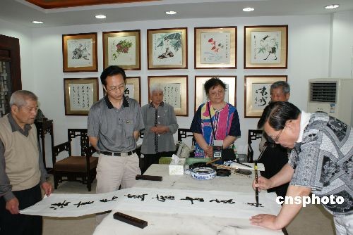 圖:世界華人美術家協會主席楊玉琪為賑災揮毫