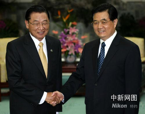 中共中央總書記胡錦濤13日下午16時30分許在釣魚臺國賓館會見臺灣海基會董事長江丙坤和海基會代表團主要成員。 中新社記者 任晨鳴 攝