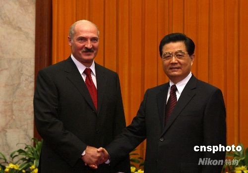 8月7日,中國國家主席胡錦濤在北京人民大會堂會見應(yīng)邀出席北京奧運會開幕式的白俄羅斯總統(tǒng)盧卡申科。中新社發(fā) 廖文靜 攝