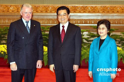 圖:胡錦濤夫婦歡迎出席北京殘奧會的維爾布魯根
