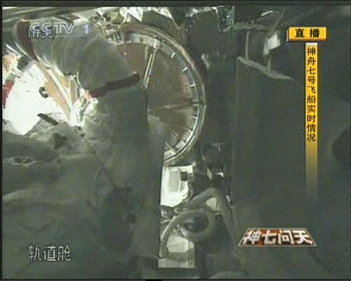 9月27日下午16時(shí)15分,航天員翟志剛在軌道艙做準(zhǔn)備,16時(shí)30分前后他將進(jìn)行出艙活動(dòng)