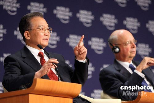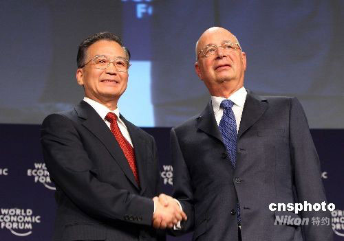9月27日,2008天津夏季達(dá)沃斯論壇“新領(lǐng)軍者年會”開幕,中國總理溫家寶、世界經(jīng)濟(jì)論壇主席施瓦布出席開幕會。中新社發(fā) 張宇 攝