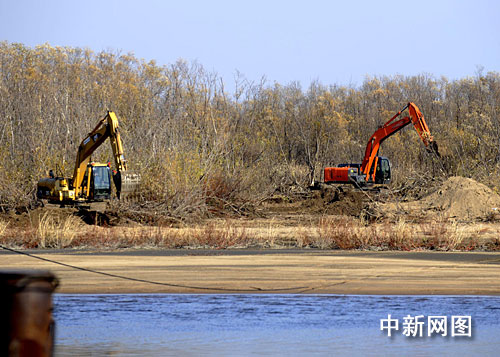 10月14日上午,中俄兩國在黑瞎子島舉行了國界東段界樁揭幕儀式。隨后,中方軍隊開始登島駐防,相關對于黑瞎子島基礎設施的修建也立即展開。吳兆飛 攝