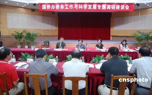 10月21日,國務院僑務辦公室主任李海峰(主席臺左二)率調研組赴廣東省進行僑務工作與科學發展專題調研。中新社發 柯小軍 攝