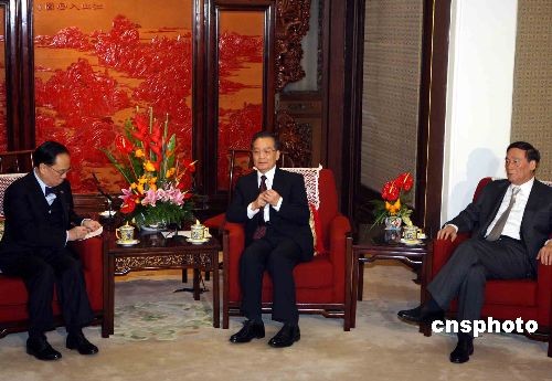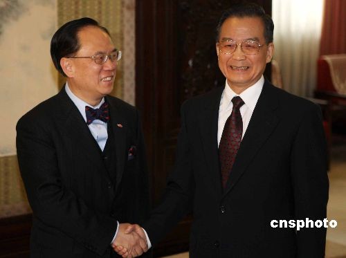 12月19日上午,國務(wù)院總理溫家寶在北京中南海紫光閣會見前來北京述職的香港特別行政區(qū)行政長官曾蔭權(quán)。中新社發(fā) 任晨鳴 攝