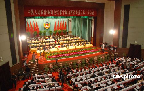 一月九日下午三時,山西省政協十屆二次會議在太原工人文化宮拉開帷幕。山西省委書記張寶順、山西省代省長王君出席,五百二十九位山西省政協委員參加會議,會議議程包括選舉政協第十屆山西省委員會新主席等。中新社發 張雷杰 攝