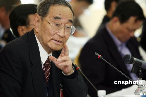 3月6日,著名經濟學家厲以寧在參加全國政協經濟界分組討論會時點評現今中國經濟熱點,表示經濟不會滑坡。中新社發 傅丹丹 攝
