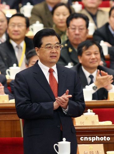 3月12日,全國政協十一屆二次會議舉行閉幕大會,國家主席胡錦濤出席閉幕大會。中新社發 盛佳鵬 攝