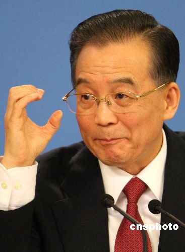 3月13日上午,溫家寶總理在中外記者招待會上回答中國新聞社記者、中國新聞網(wǎng)記者翁陽提問時表示,財政赤字還在可控的范圍內(nèi),債務(wù)也還是安全的。中新社發(fā) 任晨鳴 攝