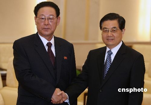 3月19日下午,中國國家主席胡錦濤在北京人民大會堂會見朝鮮民主主義人民共和國內閣總理金英日。中新社發 任晨鳴 攝
