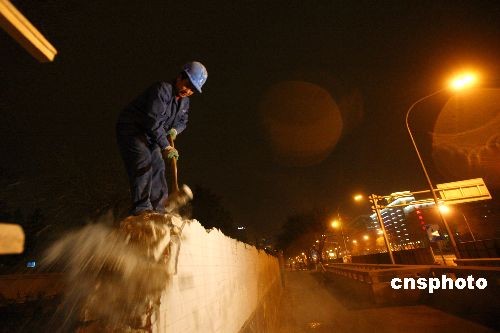 3月20日23時(shí)左右,長安街道路大修工程正式啟動(dòng)。據(jù)悉,這是十余年來長安街首次大修,預(yù)計(jì)8月30日完工。伴隨此次道路大修,將同步進(jìn)行交通工程、綠化整治和公交優(yōu)化,并對(duì)建國門立交橋進(jìn)行橋面翻新和結(jié)構(gòu)加固,對(duì)沿線多處地下通道出入口進(jìn)行延長調(diào)整,實(shí)現(xiàn)長安街復(fù)興門至建國門路段五上五下雙向十車道的規(guī)劃。為最大限度減少施工對(duì)城市交通及市民的影響,施工主要集中在夜間進(jìn)行,白天交通不受影響。中新社發(fā) 富田 攝