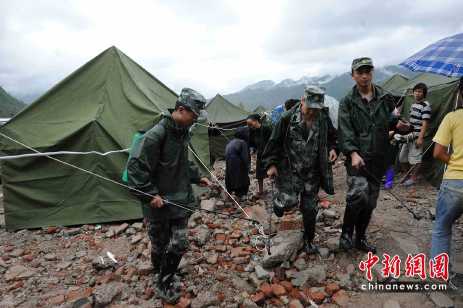 貴州關嶺滑坡 救援部隊為受災群眾搭建帳篷