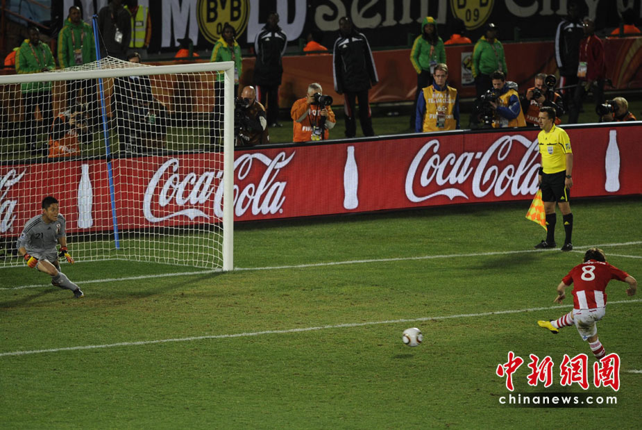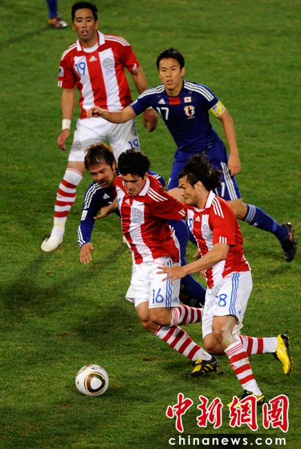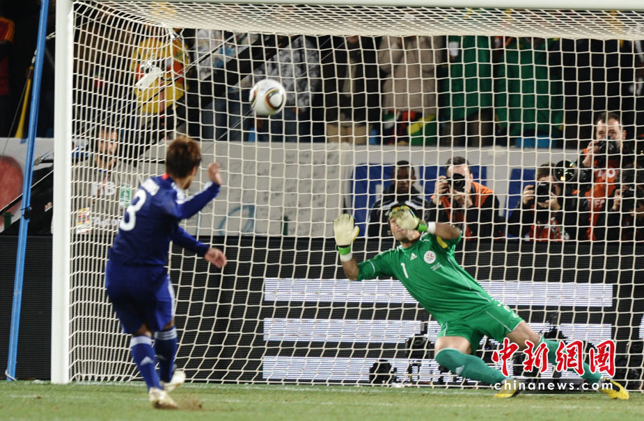 29日晚,南非世界杯1/8決賽第七場比賽比勒陀利亞的洛夫托斯球場拉開戰(zhàn)幕,由巴拉圭隊迎戰(zhàn)日本隊。120分鐘比賽結(jié)束時,雙方均沒有建樹,場上比分始終保持在0-0。在殘酷的點球大戰(zhàn)中,巴拉圭隊五罰全中,以5-3擊敗日本,挺進(jìn)八強。