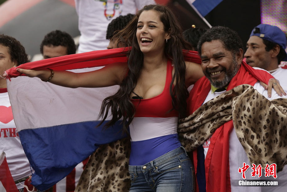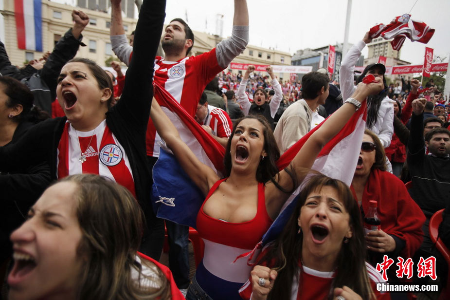 6月29日,巴拉圭點球大戰5-3擊敗日本。著名乳神女球迷拉里薩再度胸夾手機亮相,并與日本球迷同樂,瘋狂慶祝盡顯激情狂野。