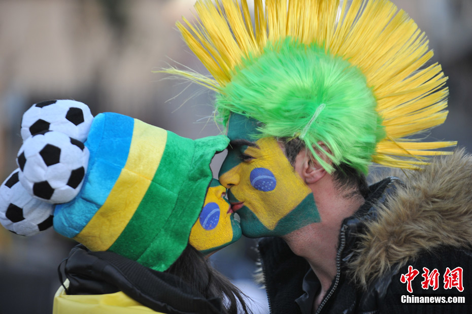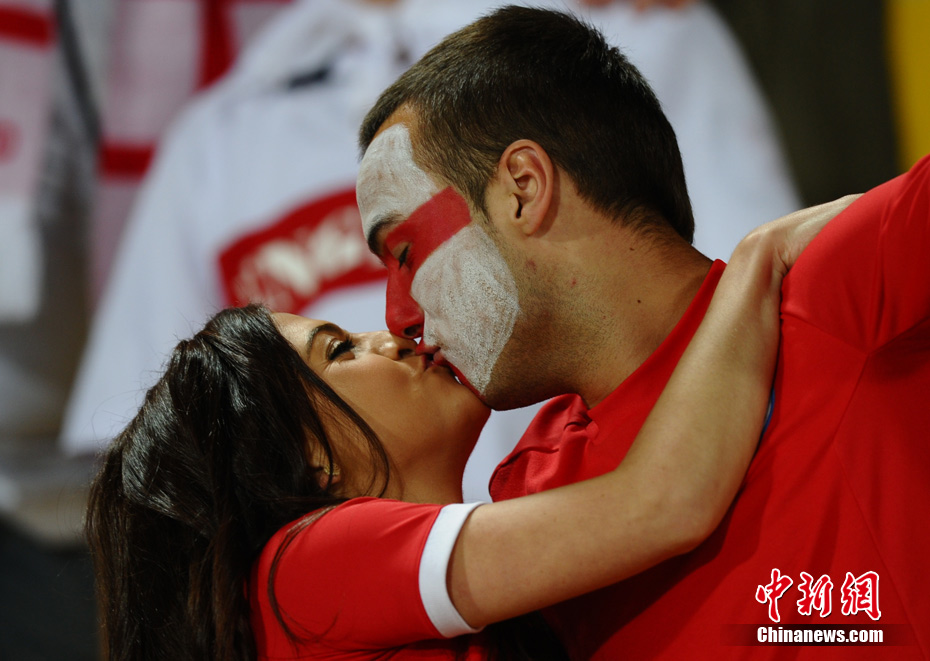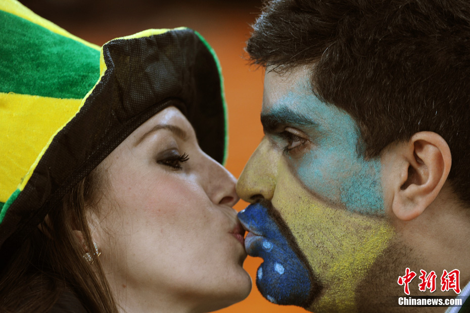 足球讓女人走開不是真理,與愛人共同享受足球之魅才是幸福。看臺上愛侶的濃情蜜意著實讓人羨慕,情到深處的深深一吻,獻給愛人,也獻給令人癡迷的世界杯。中新社記者 廖攀 攝