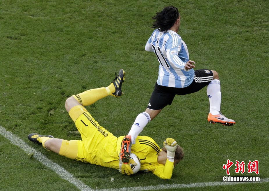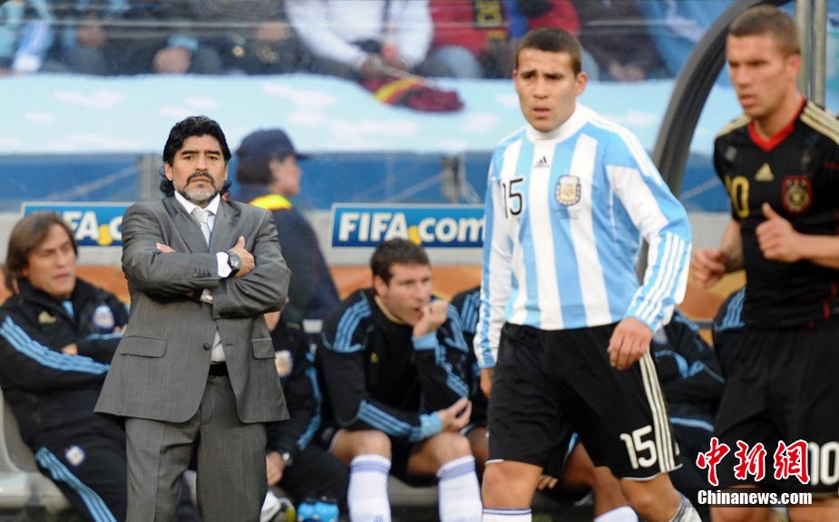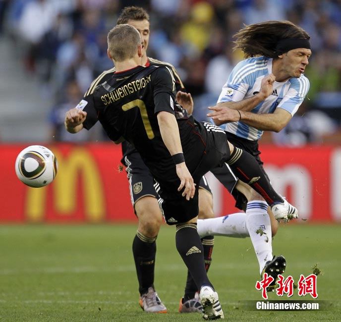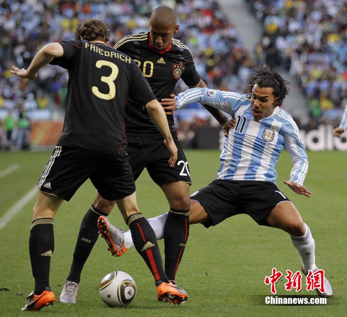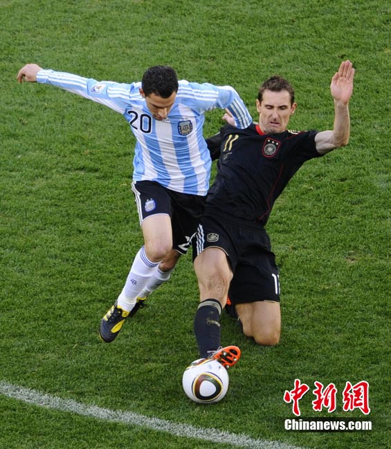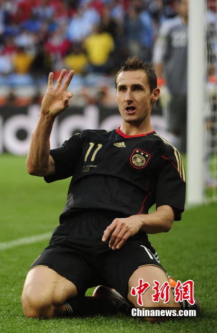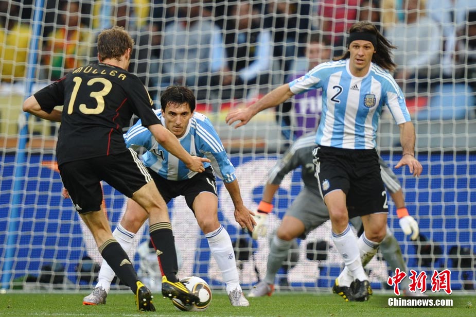 7月3日晚,南非世界杯1/4決賽第三場展開了角逐,阿根廷隊在開普敦綠點球場迎來了德國隊的挑戰。穆勒在上半場第3分鐘先拔頭籌,下半場克洛澤梅開二度,弗雷德里希也打入一球,德國隊4-0狂勝阿根廷,昂首晉級半決賽。