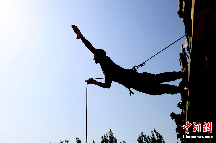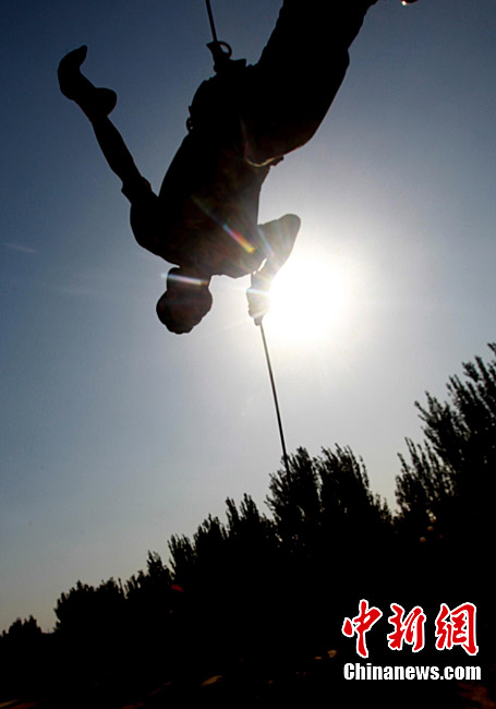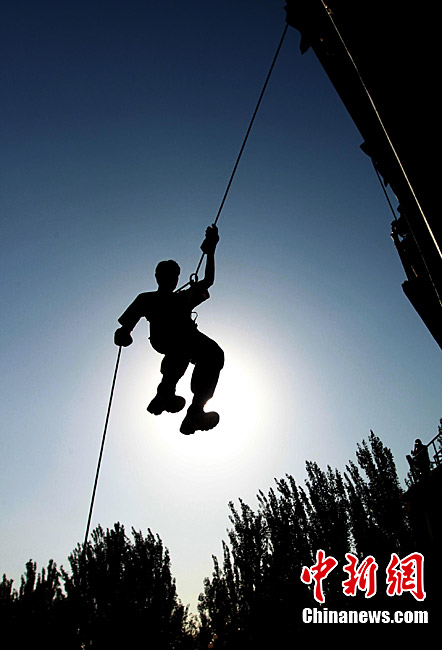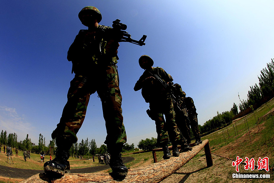 7月初,代號“友誼—2010”的中國巴基斯坦反恐聯合訓練在中國寧夏青銅峽地區展開,此次訓練主要以邊境地區山地聯合反恐作戰為課題。中巴雙方都派出了反恐精英參訓,各投入了一個連的特種作戰兵力,共200多人。這是中國與巴基斯坦兩國軍隊繼2004年和2006年,先后在中國以及巴基斯坦境內舉行反恐聯訓聯演活動之后,舉行的第三次反恐聯合訓練。這次反恐聯訓分“展示交流”、“混編同訓”和“綜合演練”三個階段進行。中新社發 杜洋 攝