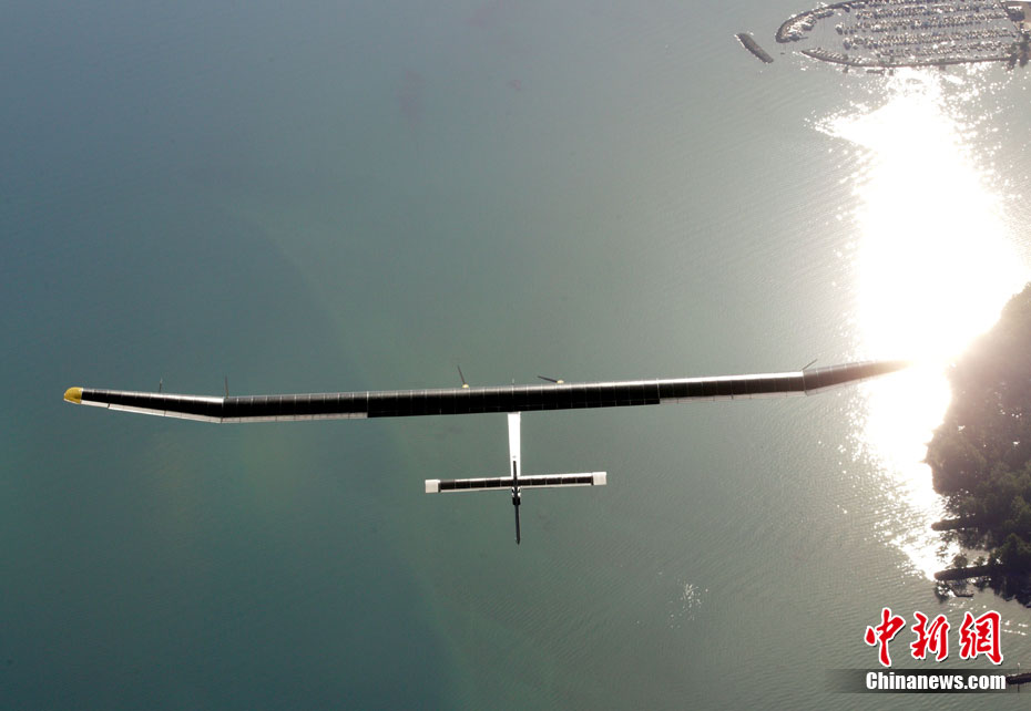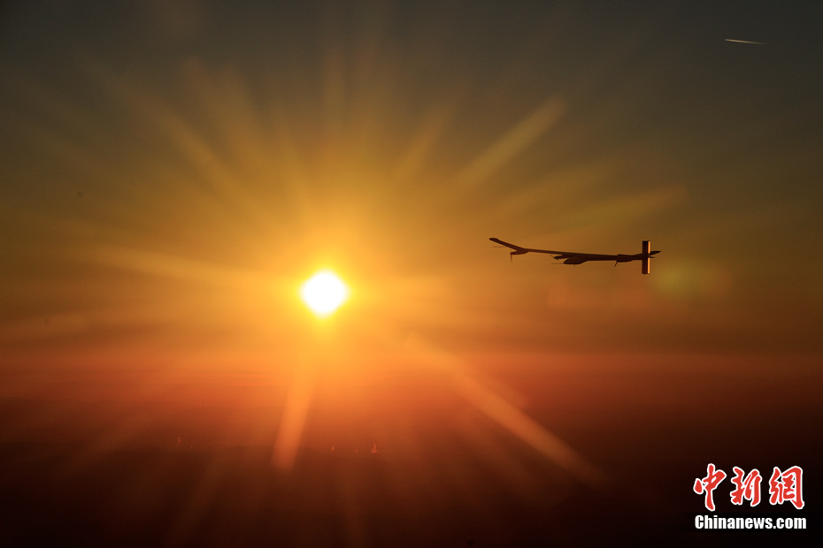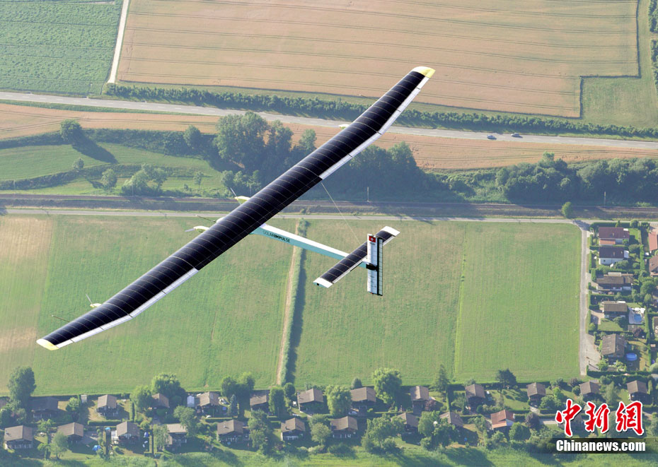 7月8日,太陽能飛機“太陽驅動”在空中飛行。世界最大太陽能飛機——瑞士制造的“太陽驅動”飛行26小時后,于當地時間8日9時在瑞士帕耶那機場降落,成功完成首次晝夜試飛。這是世界上首次進行太陽能飛機的夜間試飛。