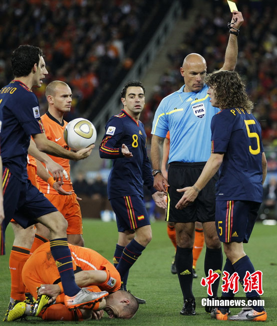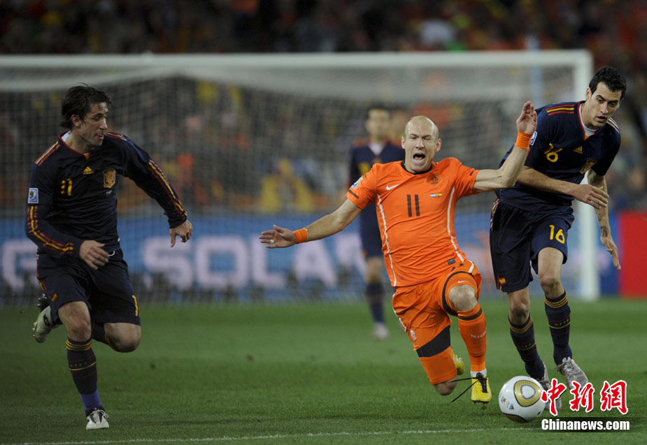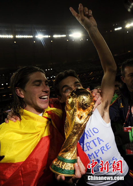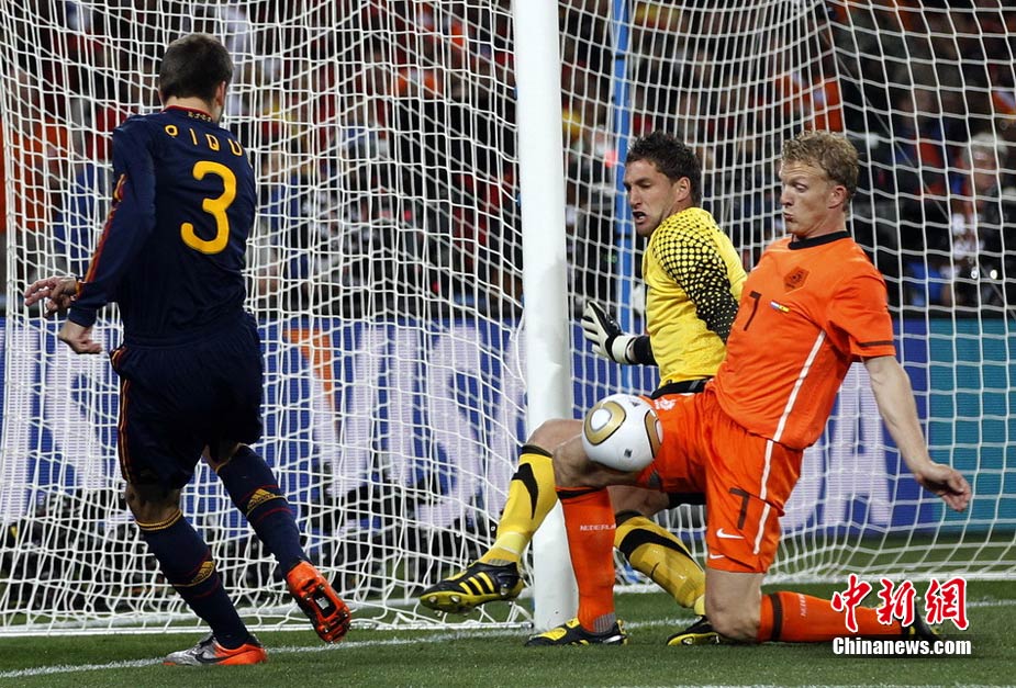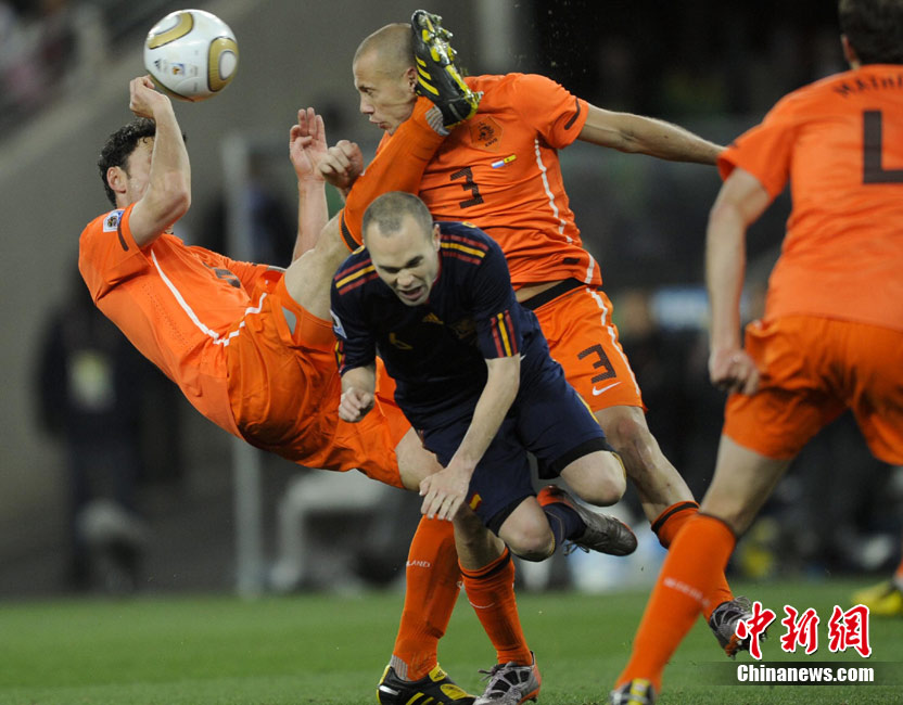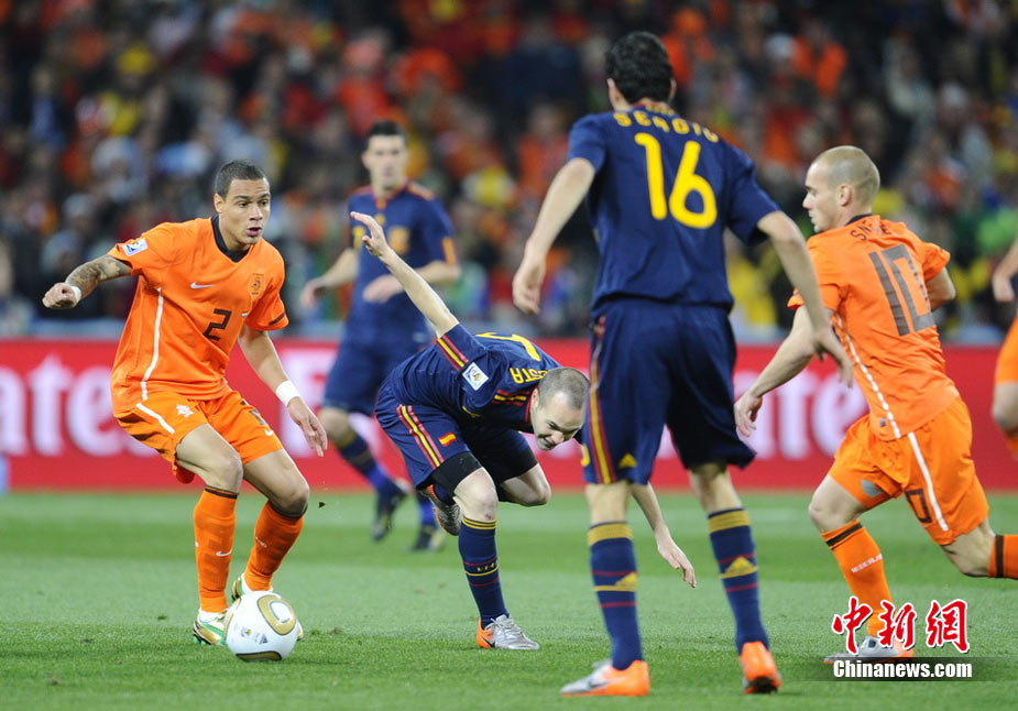 北京時間7月12日凌晨2:30,南非世界杯迎來了最終的決賽,在約翰內斯堡的足球城球場由荷蘭隊對陣西班牙。最終雙方經過120分鐘鏖戰,伊涅斯塔在第116分鐘攻入全場唯一一粒進球,絕殺十人應戰的荷蘭隊,史上首次奪得冠軍。