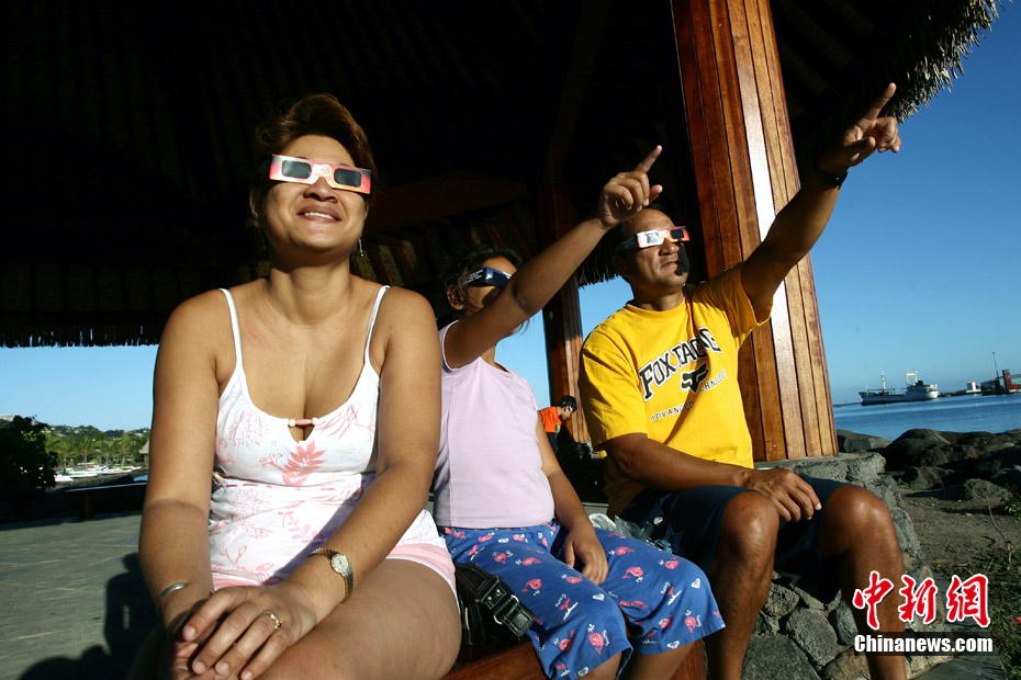7月11日,數以千計的游客涌向位于太平洋東南部的法屬波利尼西亞群島(復活節島),觀看在南太平洋群島上350年一遇的日食景象。