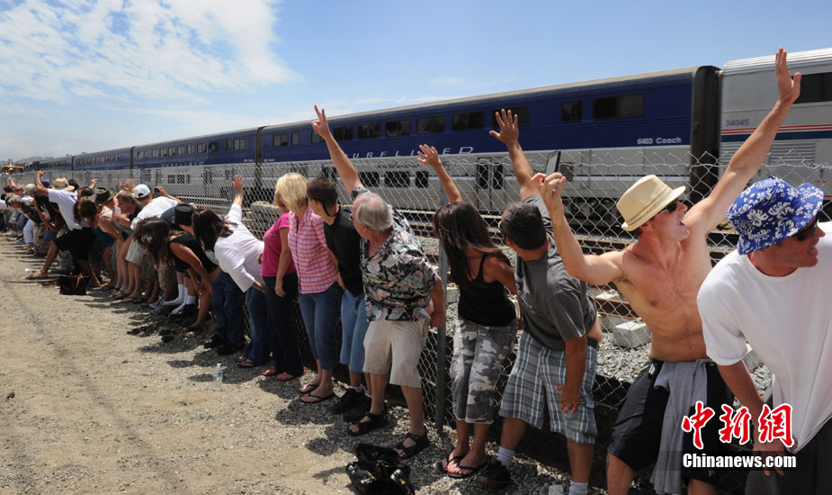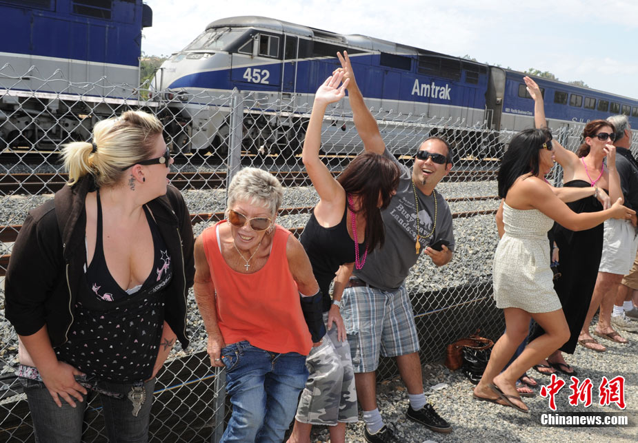 近日,美國(guó)加州南部一城市上萬(wàn)人在火車鐵軌沿線站成排,背對(duì)著經(jīng)過(guò)的火車,脫褲子露出屁股。據(jù)悉,這是當(dāng)?shù)匾荒暌欢鹊奶厣?huì)。