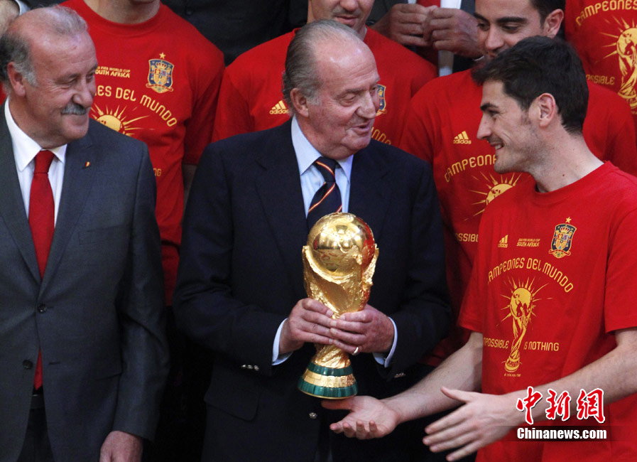 7月12日,在西班牙馬德里,首次奪得世界杯冠軍的西班牙國家隊載譽歸國,并進行奪冠后的游行。
