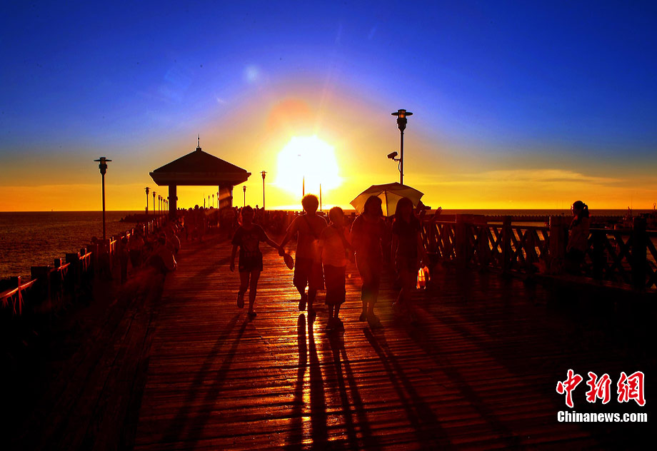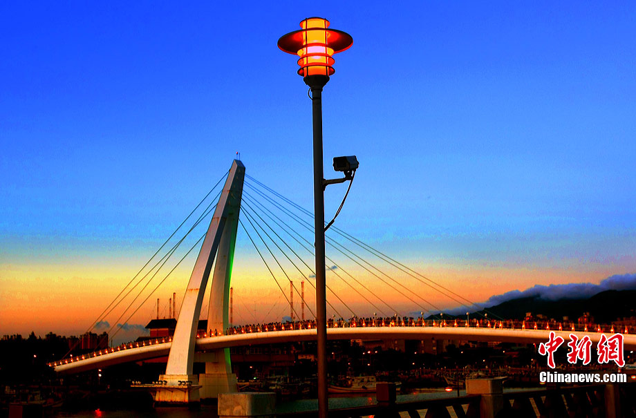 進(jìn)入7月中下旬的臺(tái)灣淡水漁人碼頭,游人如織,黃昏時(shí)下,晚霞照碼頭,漁船燈火明,景色迷人。據(jù)悉,淡水漁人碼頭,之前為淡水第二漁港,情人橋完工后,完善成為觀光休閑碼頭。中新社記者 宋吉河 攝