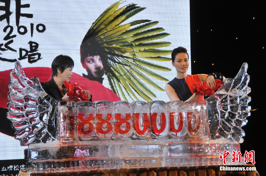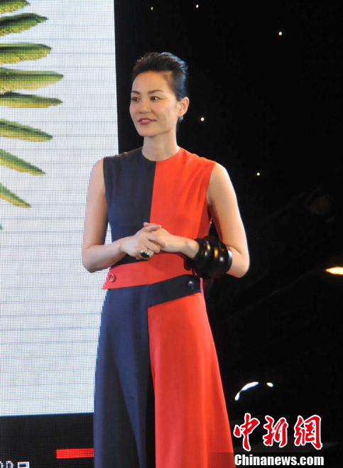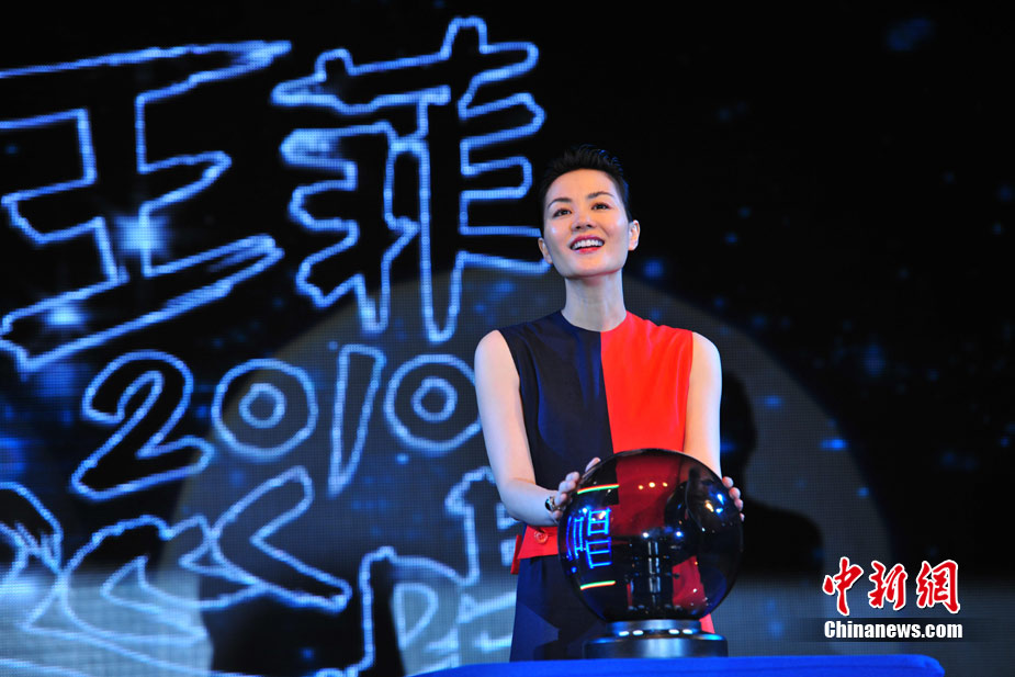 7月19日,王菲演唱會舉行發布會。淡出歌壇五年的天后王菲身穿紅黑色“八卦裙”現身,盡顯高貴氣質。中新網記者 田博川 攝