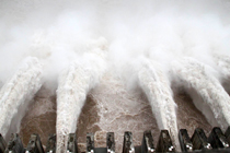 7月20日8時(shí),峰值為7萬(wàn)立方米/秒的洪水抵達(dá)三峽大壩。這是三峽工程建成后的首次大規(guī)模洪峰。大壩共開(kāi)啟9個(gè)泄洪深孔,將洪水下泄流量控制在4萬(wàn)立方米/秒左右,削減了4成多的洪峰下泄流量。中新社發(fā) 劉良偉 攝