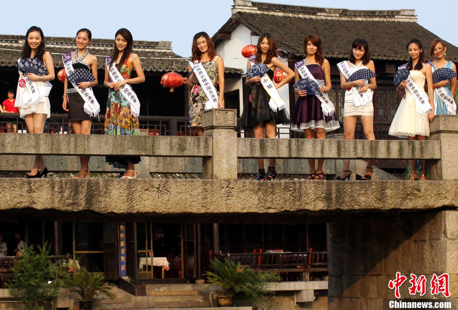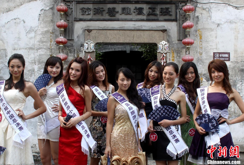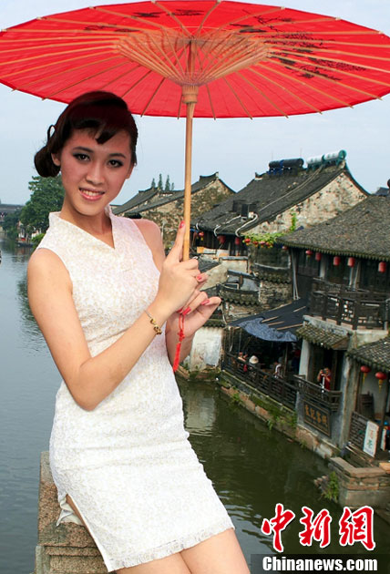 7月20日,正在浙江參加2010年國際旅游小姐中國區(qū)總決賽的34位佳麗來到西塘古鎮(zhèn)拍攝外景。此次賽事采取六輪淘汰賽形式進行冠亞季選拔,并以欄目采取真人秀形式立體展示國旅及合作景區(qū)風采。圖為參賽佳麗身著旗袍展示風采。中新社發(fā) 錢興強 攝