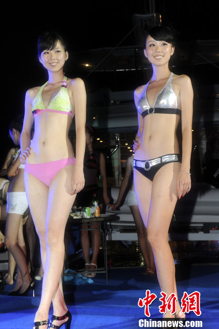 7月25日,2010青島國際海洋節(jié)盛大開幕。當(dāng)晚,在青島奧帆中心的游艇上舉行了一場活力四射的比基尼派對。中新網(wǎng)記者 田博川 攝