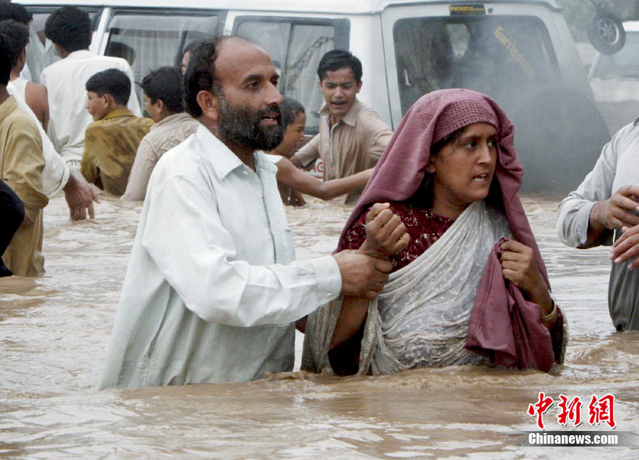 巴基斯坦官員29日表示,由于季風(fēng)持續(xù)導(dǎo)致暴雨,巴基斯坦多處遭洪水淹沒,河壩絕提,上周到現(xiàn)在已經(jīng)造成100多人喪生。信息部官員稱,這是巴基斯坦自1929年以來最為嚴(yán)重的洪災(zāi),此次洪水可能導(dǎo)致最多40萬人被圍困。