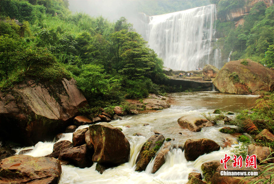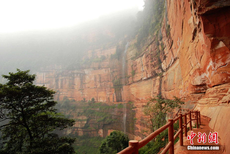 “中國丹霞”項目是中國把全面展示丹霞地貌形成演化過程的貴州赤水等6個丹霞地貌風景區“捆綁”申報自然遺產,包含的6個申報點分別是福建泰寧、湖南崀山、廣東丹霞山、江西龍虎山(包括龜峰)、浙江江郎山、貴州赤水。圖為貴州赤水著名丹霞地貌景區——佛光巖。中新社發 李學仕 攝