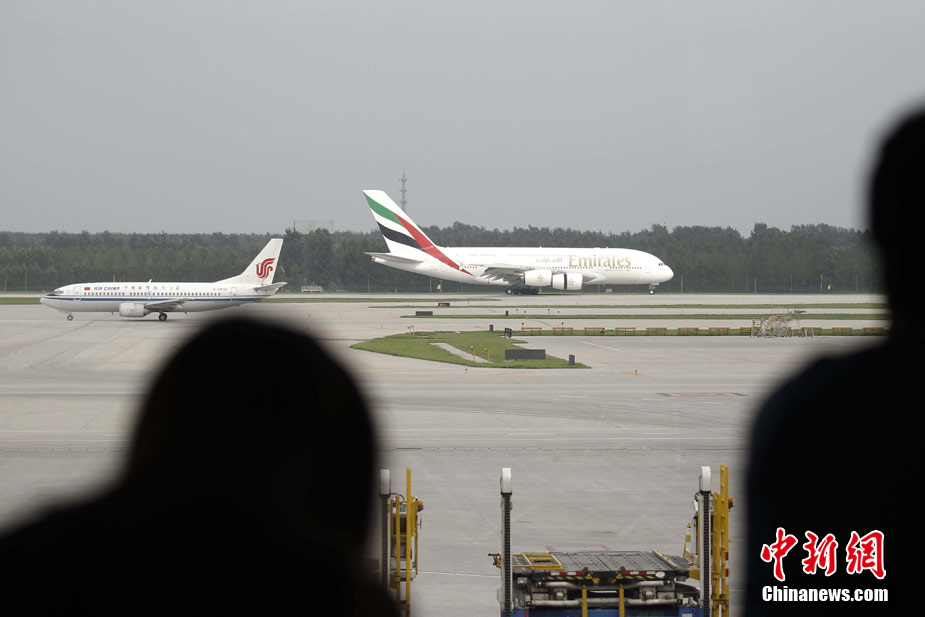 8月1日,阿聯酋航空公司A380飛機降落在北京首都機場,這是世界上最大客機A380執行的首條定期飛北京的航線。空客A380是世界上最環保的商業客機,它的合成材料、輕身原料和加固構架使其每座位燃油消耗比其他同類型飛機低20%以上。