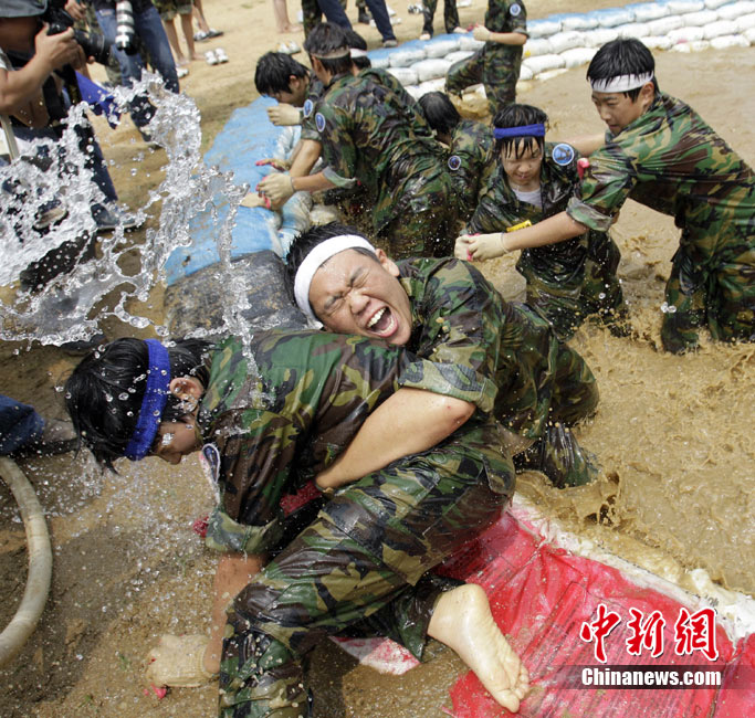 韓國學(xué)生軍事基地訓(xùn)練 磨練意志體魄